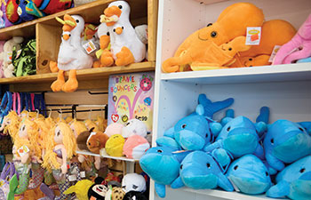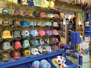 Aside from the Surf Shop, a playful, high-traffic front is stocked with souvenirs and beach essentials. American Gift Corp. is a key supplier, as are toys by Barry-Owen Co. and Fun Stuff Inc., ranging from die-cast cars, popular 3D-printed animals and rubber sea creatures. Games move from shelves, especially on rainy days.