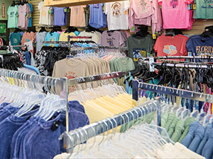 A lot of the souvenir T-shirts are kept together on racks in one of the four rooms of Beach Bazaar for a convenient shopping experience.