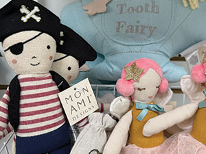Tate & Tilly carries an assortment of coastal plush, including pirates and fairies.