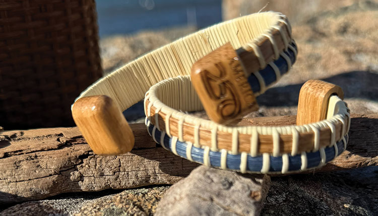 The resulting designs feature woven cuff, clasp and bangle bracelets, select pieces etched with the America250 logo, and a color palette inspired by “a well-used flag” — faded blues and reds paired with a clean, neutral brown that reflects both heritage and current home decor trends. The aesthetic is intentionally subtle and elevated.